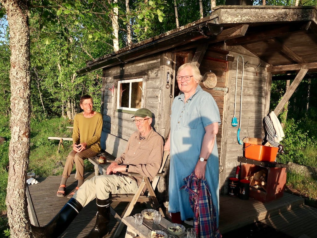 Menuen var røget vildlaks samt en dessert af bagt traditionel, finsk ost med multebærsyltetøj. Inden desserten tændte Martin op i deres brændefyrede sauna og inviterede på en svedetur og et kølende havbad. Efter kaffe i krus med Mumimotiver gik vi til køjs med lette kroppe og sind på den lysning i skoven, hvor folkevognen holdt.