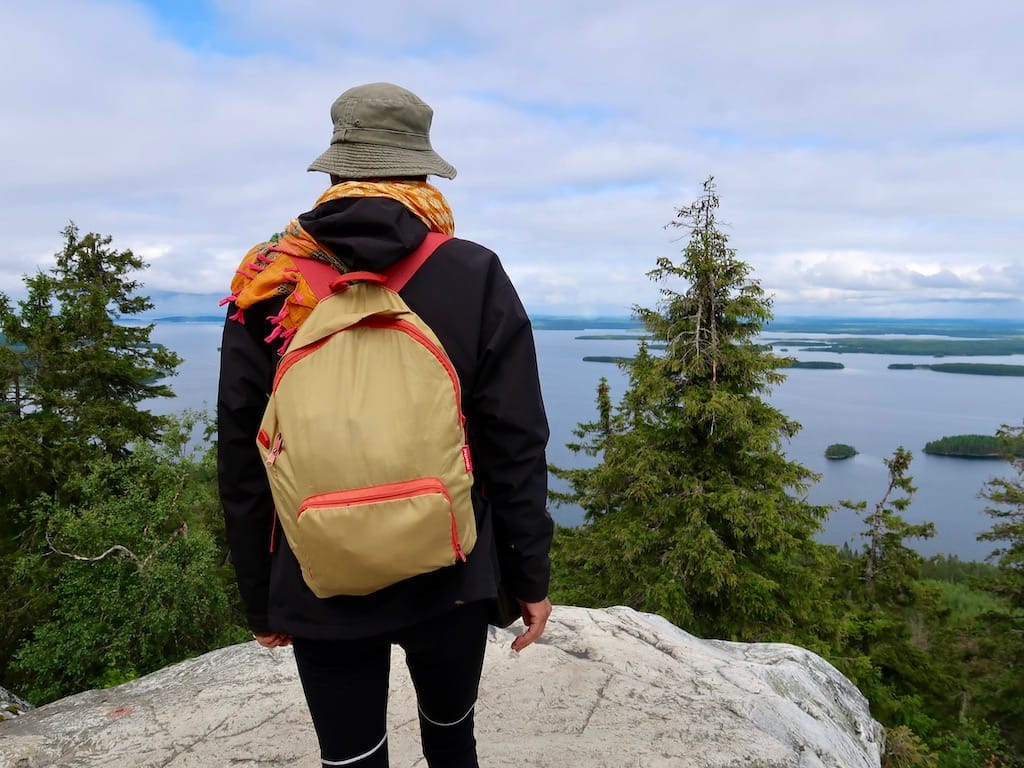 Vi vandrede ruten til toppene Ukko-Koli, den gamle mand, Akka-Koli, den gamle kvinde, og Paha-Koli, den onde. Belønningen var forrygende udsigter over søen Pielinen. Familier i trekkingtøj hjalp os med lokalkendt guidning.