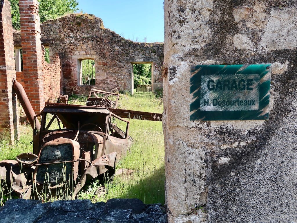 Oradour-sur-Glane var offer for en massakre gennemført af Waffen SS i juli 1944. 642 indbyggere blev dræbt og byen brændt ned som gengældelse for modstandsbevægelsens påståede aktiviteter. Nedbrændte huse og rustne brugsgenstande står nu som et monument. Et mindecenter fortæller historien og udstiller portrætter af ofrene, der hviler på en gravplads i udkanten af byen. General de Gaulle ønskede ruinerne bevaret for at minde menneskeheden om krigens barbari. Vi besøgte stedet sammen med andre, der ligesom os betragtede og begræd det meningsløse overgreb mod en fredelig fransk landsby.