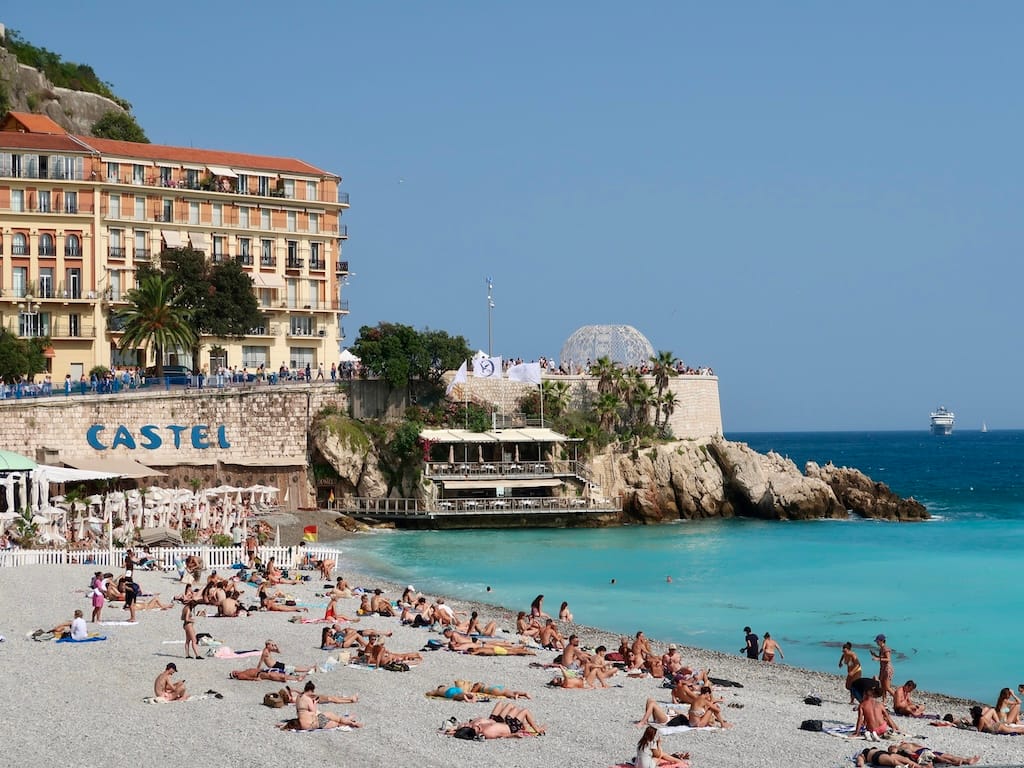 Vi gik ture i byen og på Promenade des Anglais, som blev skænket af englændere i 1824. Den britiske Dronning Victoria opholdt sig i 1890’erne i Nice flere vintre, og en statue af hende står foran Hôtel Régina, hvor hun boede. Oprindelig var promenaden en sti, nu er det en boulevard med plads til biler, cykler, og fodgængere. Vi så mennesker i uformelt sommertøj, mænd i jakkesæt, kvinder i stilfulde kjoler, rulleskøjteløbere samt cyklister. På strandene nød letpåklædte badegæster solen og vandet.