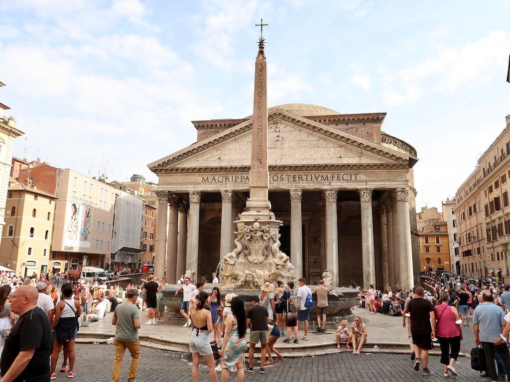 Peaceful Piazza Farnese houses the French Embassy. Lively Piazza Campo de' Fiori a vegetable and flower market. The Pantheon, with its impressive concrete domed roof, is an ancient temple for all gods, which was transformed into a church, and later into a burial place for the kings of Italy. Guarded Palazzo Chigi and Palazzo Montecitorio house Italy's prime minister and the Chamber of Deputies respectively. Piazza del Campidoglio on the Capitol, the smallest and tallest of Rome's seven hills, is the town hall square, where brides and grooms pose for photographs.