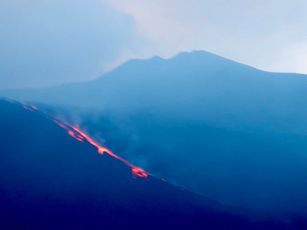 The highlight of the trip was a hike to a ledge with a view, where we enjoyed a picnic with sandwiches and wine. As the sun set, a large glowing lava sausage on the opposite mountainside became visible. It created a mindful silence in the group with participants from several countries. "When you see this, your little problems disappear," observed Emanuele.