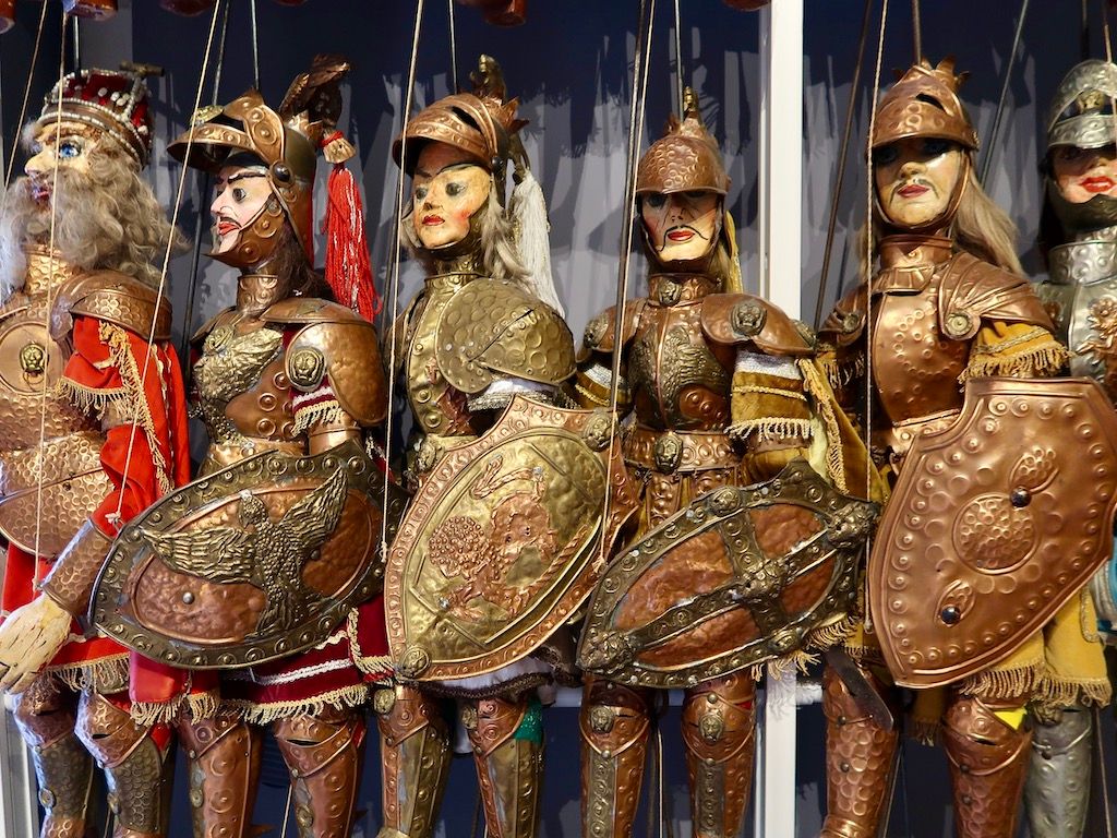 Sicily has a tradition of marionette theatre, which among others the Vaccaro-Mauceri family in Syracuse’s Jewish quarter continues. We saw a play in several acts in Italian and understood that the knight Orlando, a beautiful maiden and a dragon that was killed were important characters. The family's museum tells the history of theatre in miniature and displays finely crafted puppets.